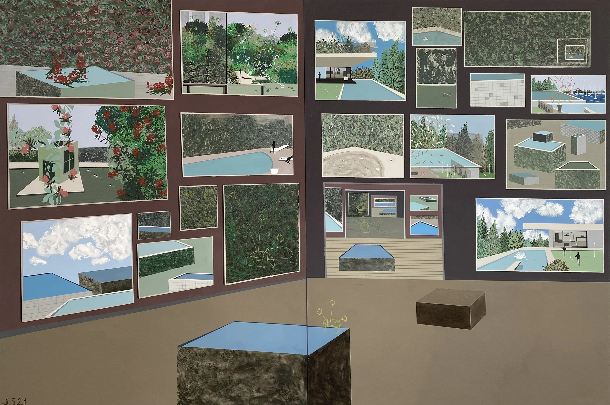 The pandemic gave Strēle pause to reflect on artisthood and the role of art. Painting "exhibitions that never happened," she depicts her work in large museum halls or art collections hung in spacious nostalgic living rooms in a sometimes almost comic-like style. In other artworks, she considers painting's relation to the digital and the social; being a woman artist and the female body; applying her penchant for intertwined storytelling in rich, layered narratives full of intriguing twists and hidden references.