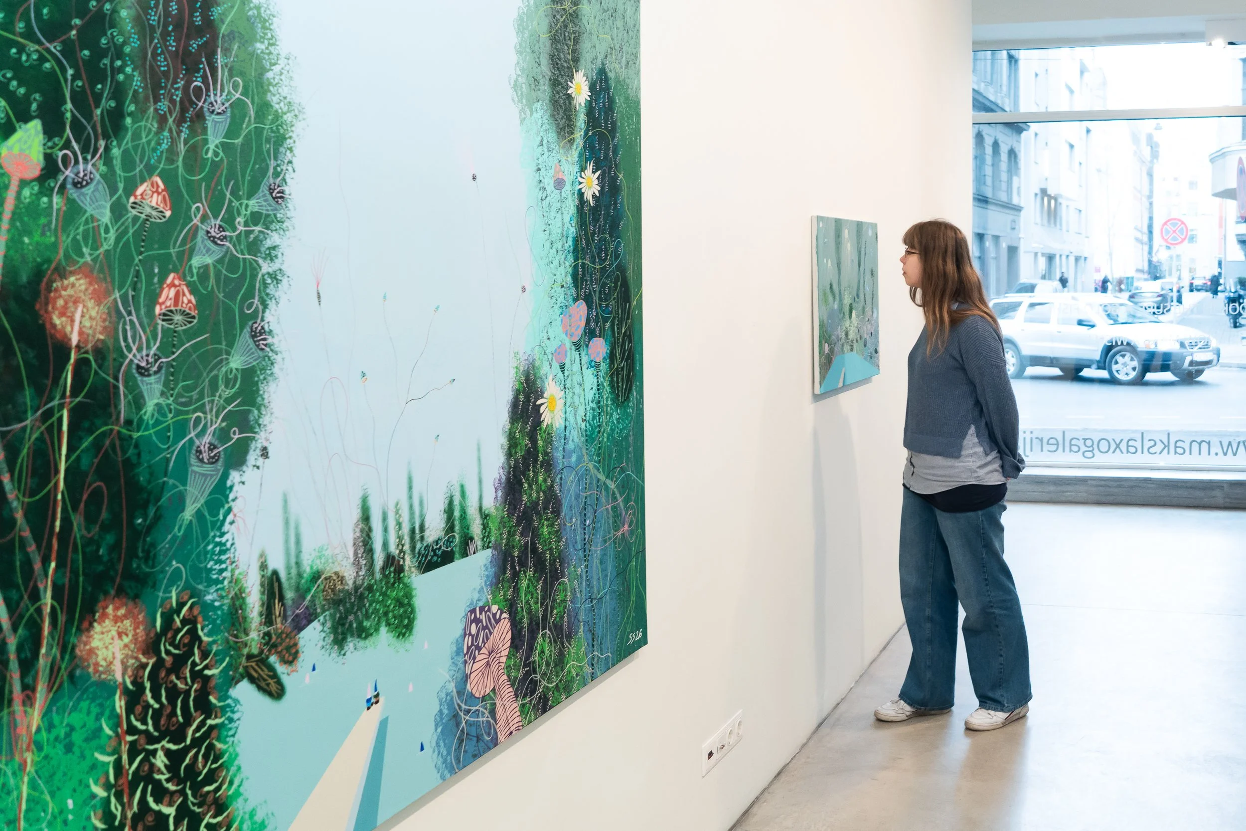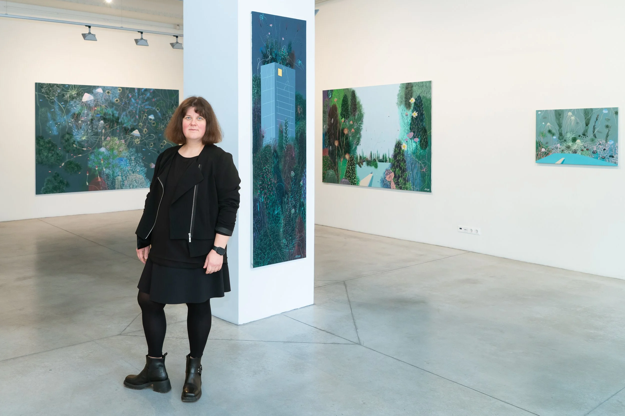 In her artistic practice, Sandra Strēle explores expanded forms of painting, creating large-scale series in which narratives, motifs, and figures develop and transform, forming continuous storylines. In her latest series, Sandra Strēle continues the theme introduced in her 2025 solo exhibition “The Night Before” at the Mark Rothko Museum in Daugavpils: the human aspiration to find harmony and happiness, to encounter another person with whom to share this sense of fulfilment, and to remain at peace against the backdrop of a turbulent world. Central to the series is the image of the goldfish – a figure we have trusted since childhood as the embodiment of the promise that anything is possible. Emphasising the significance of this symbol, rooted in ancient Chinese mythology and associated with happiness, prosperity, peace, and good fortune – as well as with the power to attract positive energy and ward off misfortune – the artist invites reflection on the meaning of our wishes and our faith in them at a time when the global order feels unstable and unsettling.